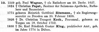 - 1826: Christian Traugott Koch (1752–1826), Ratsherr (»Proconsul«)