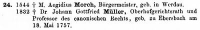 - 1832: Johann Gottfried Müller (1757–1832), Jurist, Professor des kanonischen Rechts, Oberhofgerichtsrat