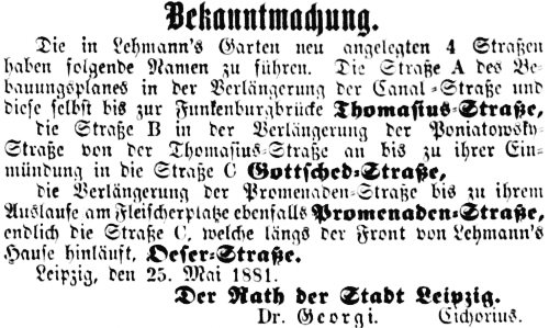 - Ausschnitt aus dem Leipziger Tageblatt vom 29. Mai 1881, Seite [1]