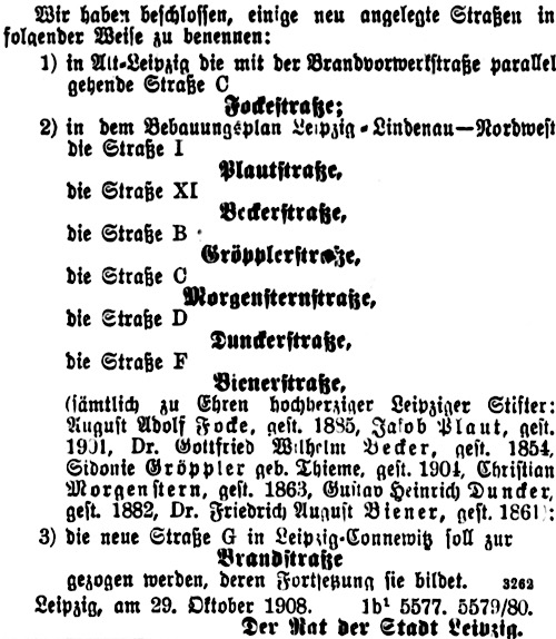 • Ausschnitt aus dem Leipziger Tageblatt vom 6. November 1908, Seite [5]
