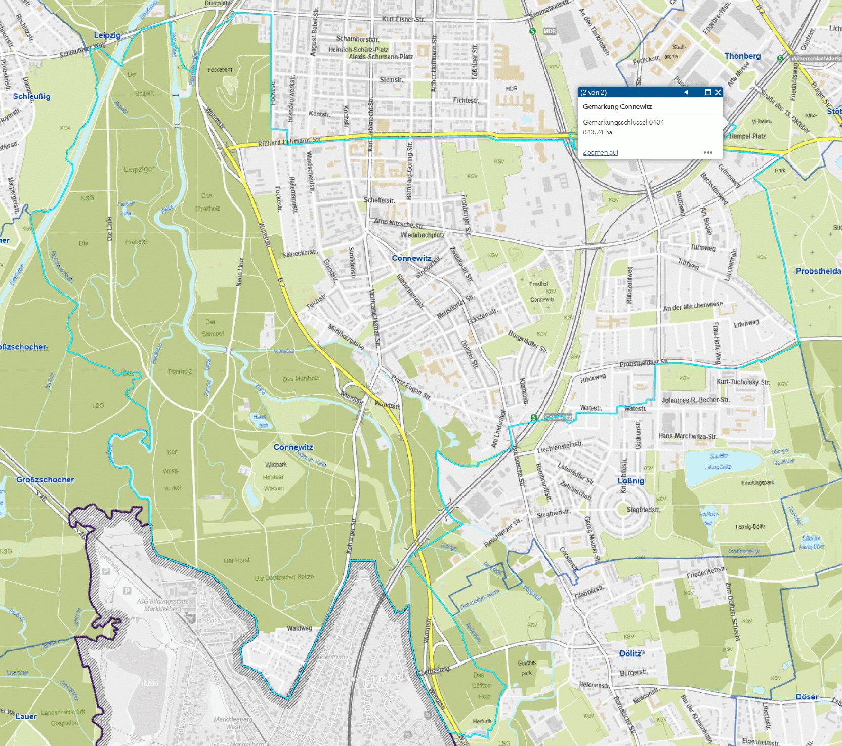 • Bildschirmkopie vom Online-Stadtplan unter leipzig.de (29.08.2025, 11:09 Uhr)