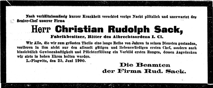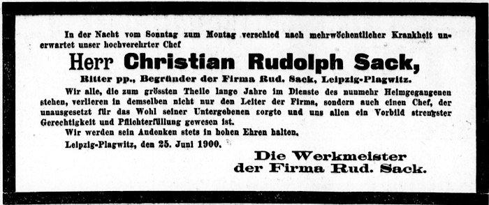 | 17:35, 26. Sep. 2025 | SackR.jpg (Datei) | 120 KB | André Loh-Kliesch | *Bildnachweis: ''Rud. Sack. Leipzig-Plagwitz. 1863–1913.'' Leipzig 1913. (Porträt im Frontispiz) | 1 | |